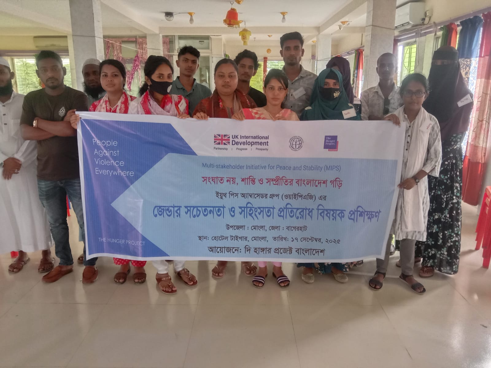 নিজস্ব প্রতিবেদকঃ আজ বুধবার, ১৭ সেপ্টেম্বর ২০২৫ সকাল ১০টায় মোংলা উপজেলার একটি হোটেলের সভাকক্ষে “সংঘাত নয়, শান্তি ও সম্প্রীতির বাংলাদেশ গড়ি” এই প্রতিপাদ্যকে সামনে রেখে ইয়ুথ পিস অ্যাম্বাসেডর গ্রুপ (ওয়াইপিএজি)-এর দিনব্যাপী জেন্ডার সচেতনতা ও সহিংসতা প্রতিরোধ বিষয়ক প্রশিক্ষণ এবং ত্রৈমাসিক সভা অনুষ্ঠিত হয়। এ প্রশিক্ষণ ও সভার আয়োজন করে দি হাঙ্গার প্রজেক্ট বাংলাদেশ-এর মাল্টি-স্টেকহোল্ডার ইনিশিয়েটিভ ফর পিস অ্যান্ড স্ট্যাবিলিটি (MIPS) প্রকল্প, যা এফসিডিও’র আর্থিক সহায়তায় বাস্তবায়িত হচ্ছে।