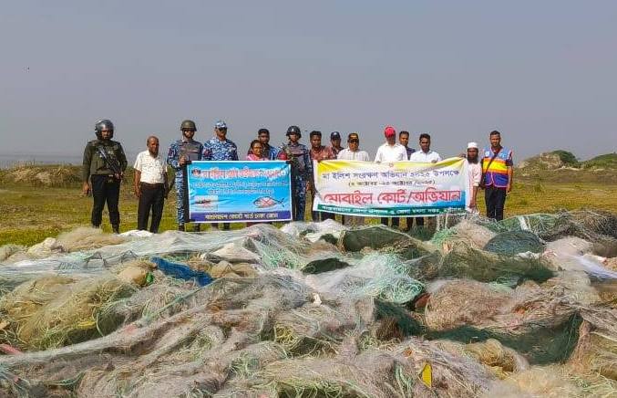 শ্রীনগরে মা ইলিশ ধরার অপরাধে ১১ জেলেকে কারাদন্ড ও ১ কোটি মিটার জাল ধ্বংস